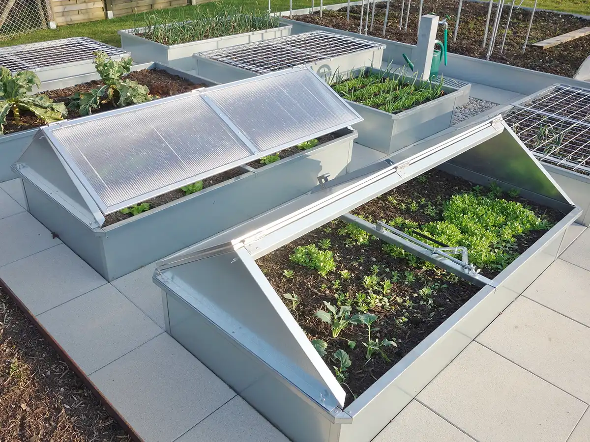 Bevorzugt werden Salate, Kräuter, Radieschen, Spinat, frühe Kohlrabi sowie kompakte Gurken/Zucchini. In Kombination mit der Abdeckung werden Jungpflanzen geschützt und empfindliche Kulturen früher gestartet.